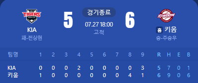 9회 극적으로 동점 만들었으면서, 2아웃 잘 잡고 쫄보 야구하다가 끝내기 쳐 맞네
