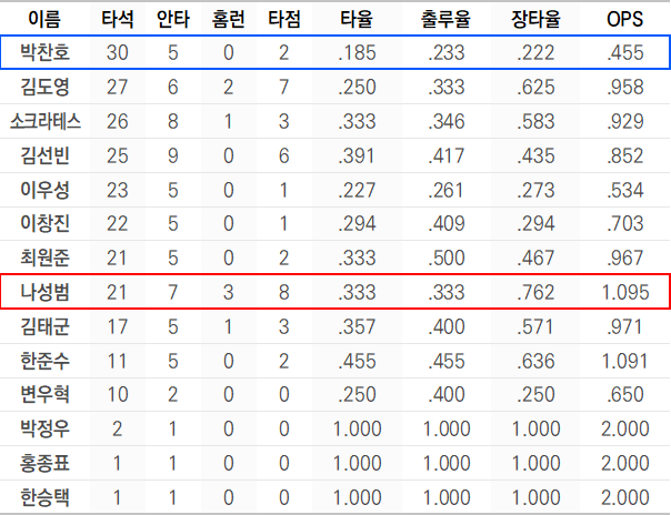 - 김도영, 소크라테스, 김선빈, 최원준, 김태군, 한준수